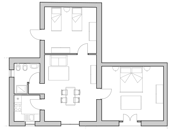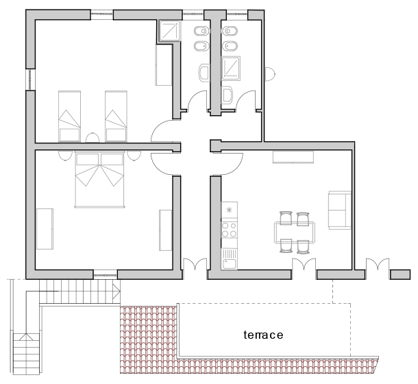 Trilocale Plus: circa 80 mq. composto da cucina – soggiorno, camera matrimoniale, camera doppia, 2 bagni con doccia, grande veranda privata con tavolo e poltroncine. 2 ulteriori posti riservati a ragazzi massimo 14 anni in divano letto zona living, aria condizionata, lavastoviglie.