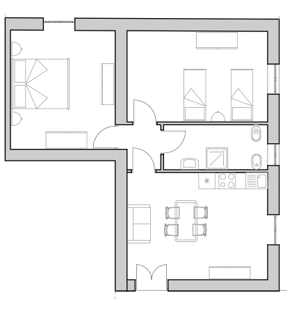 Trilocale con balcone: circa 80 mq. composto da cucina – soggiorno, camera matrimoniale, camera doppia, bagno con doccia, terrazza riservata con tavolo e sedie. 2 ulteriori posti riservati a ragazzi massimo 14 anni in divano letto zona living, aria condizionata, lavastoviglie.